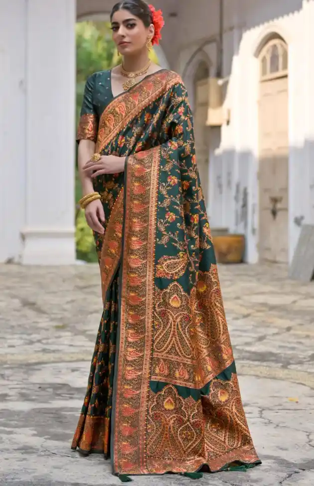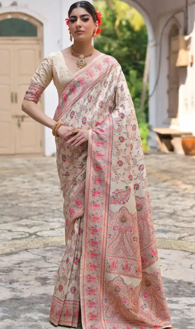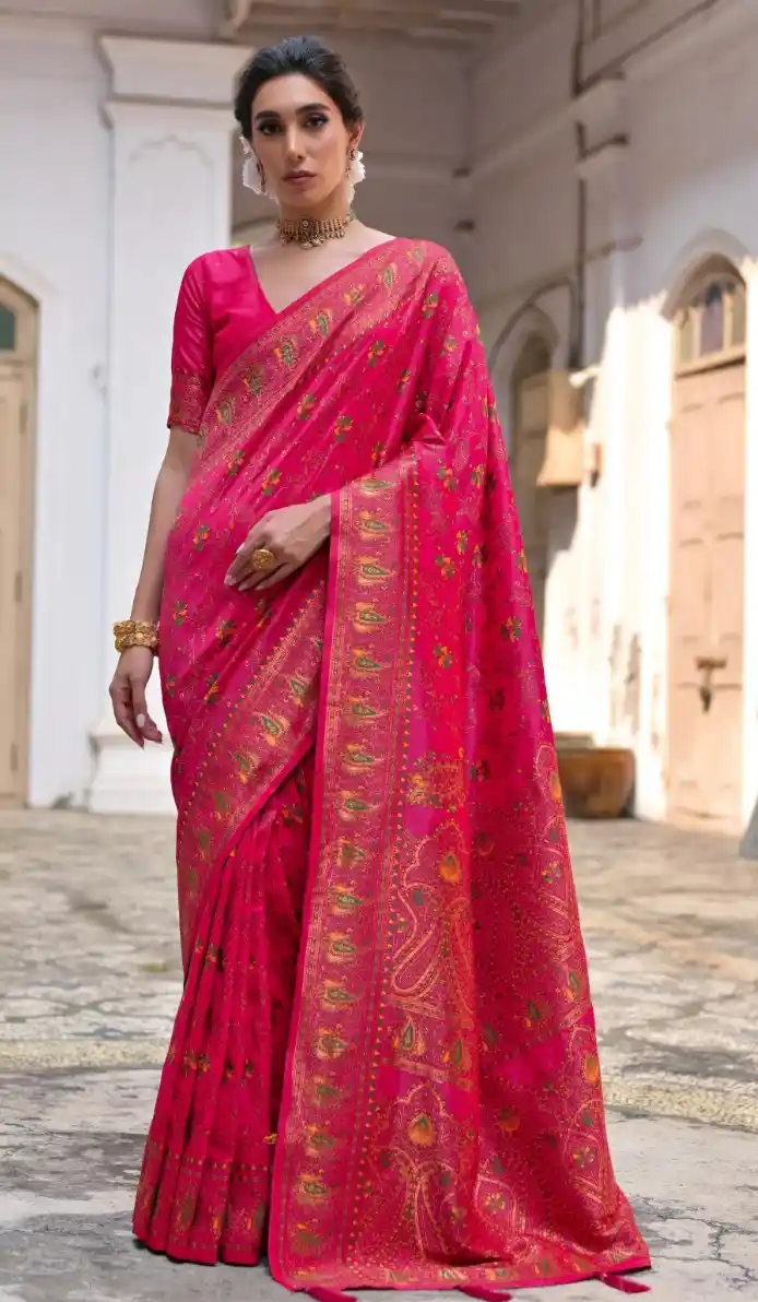 With all over exotic kashmiri type colourfull jal weaving pattern